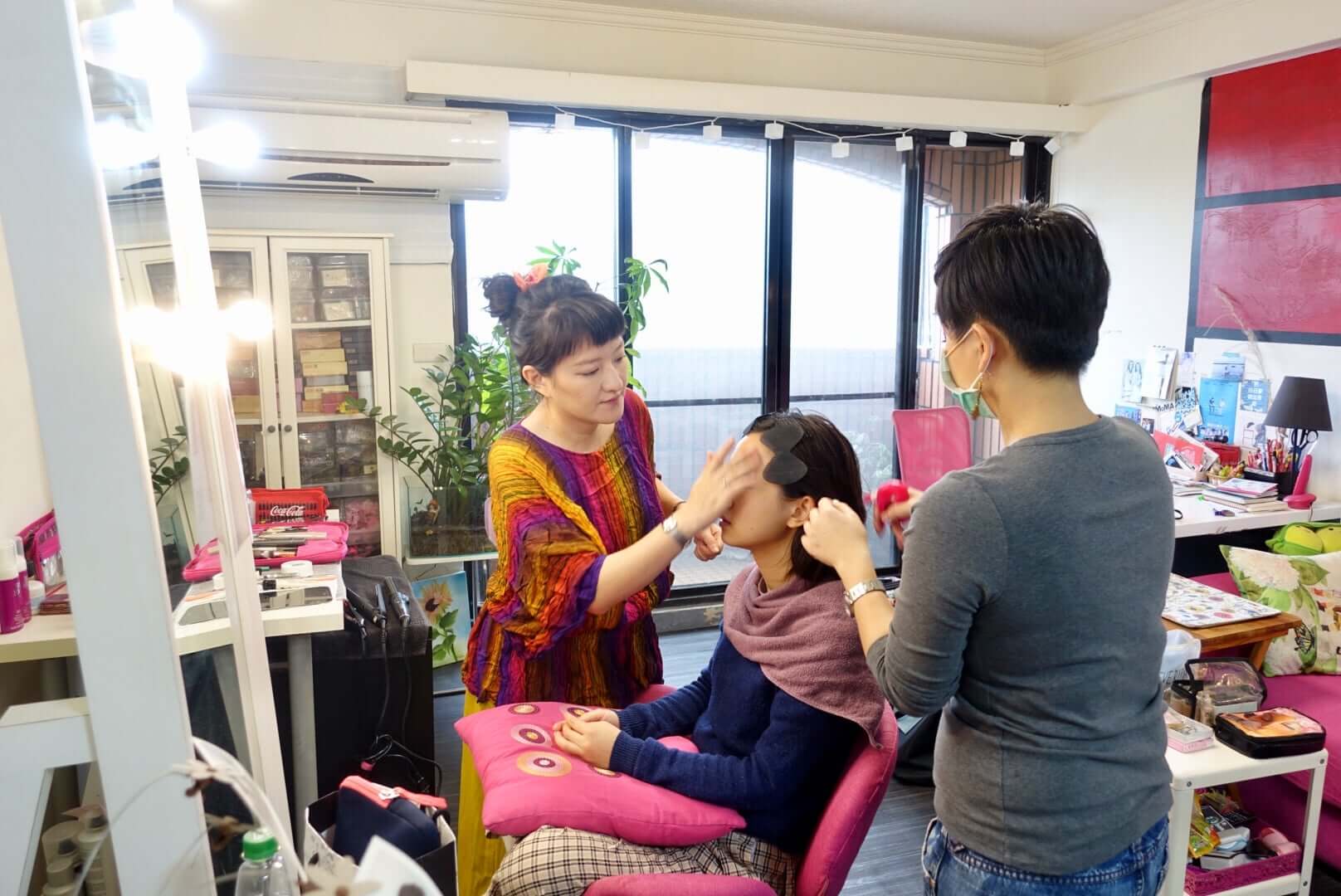 荳在工作室請莉蓉拍一下演員現場的照片,確認日光下的妝髮狀態和交代一點細節後,