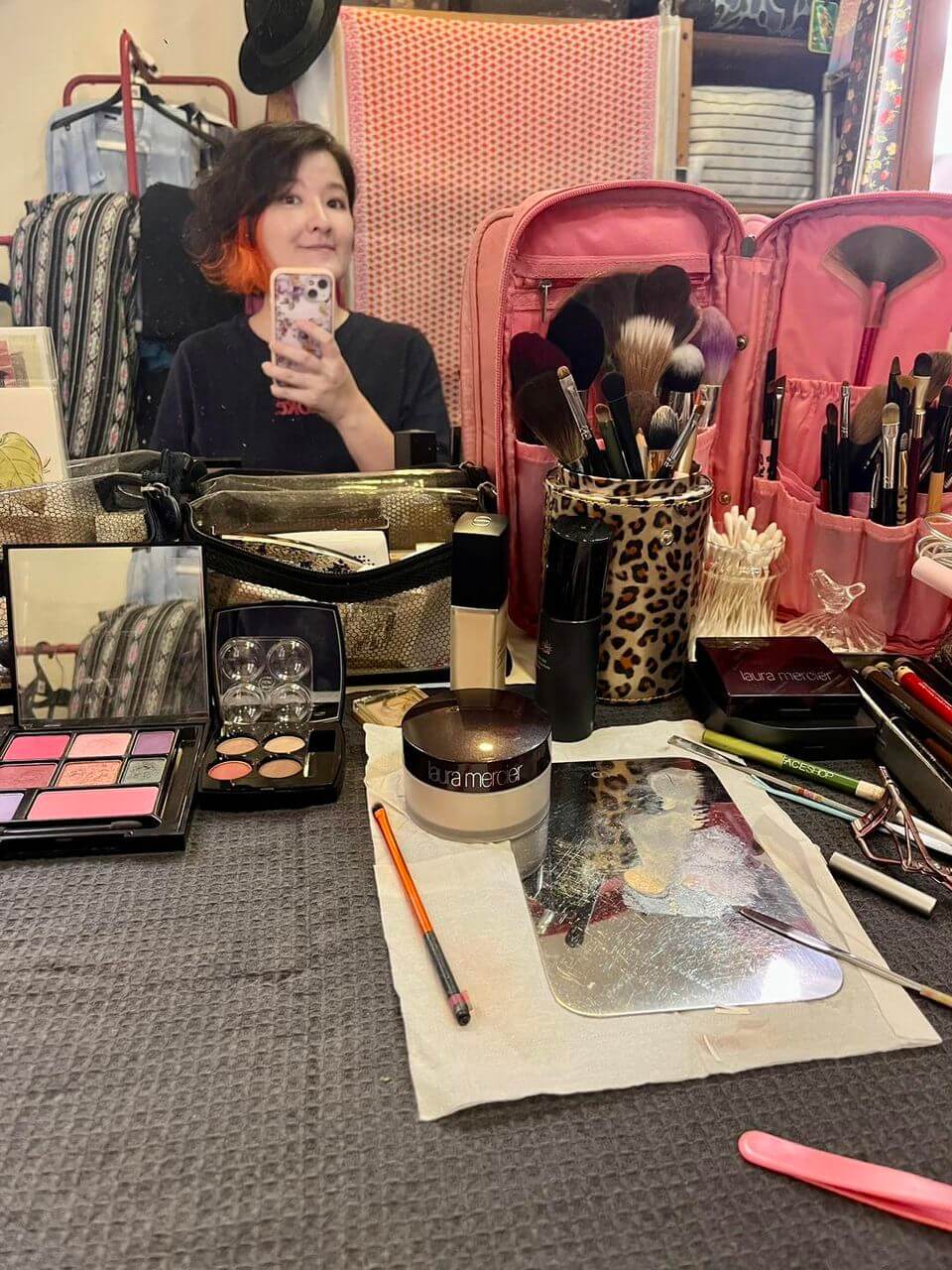 工作桌側拍的是今天,第三次幫上雯妝髮。這次除了節目專訪,也會拍攝一些平面照。