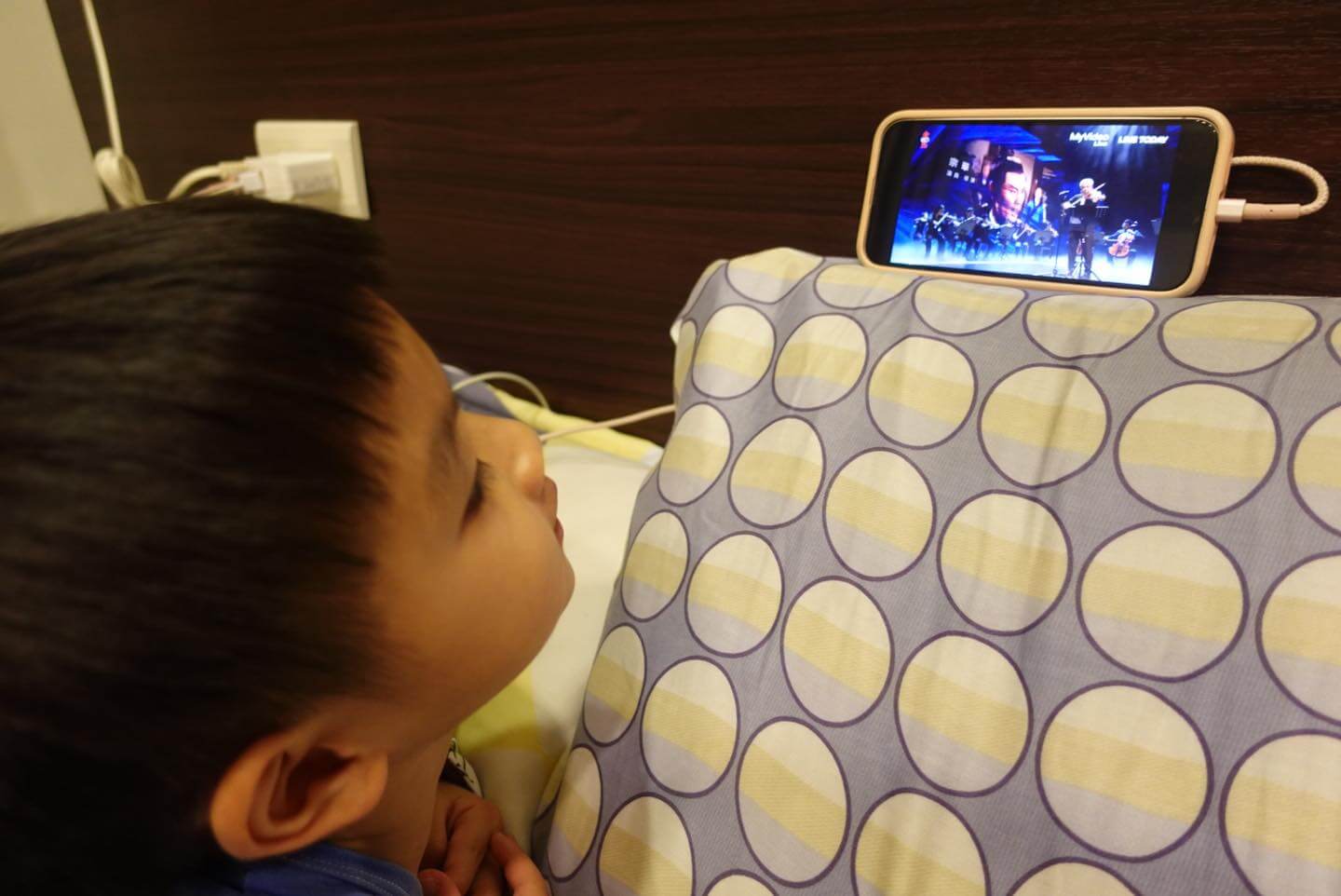 兒子跟著我看了一段,這是他第一次看頒獎典禮,一直問我「剛剛那兩個人呢?為什麼又換人了?」最後被爸爸趕去睡覺,