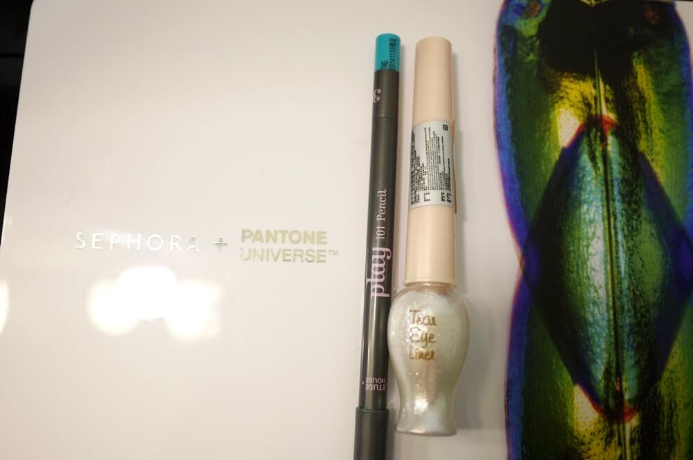 再用珠光眼線液,點在下睫毛空隙中,創造不同的層次。