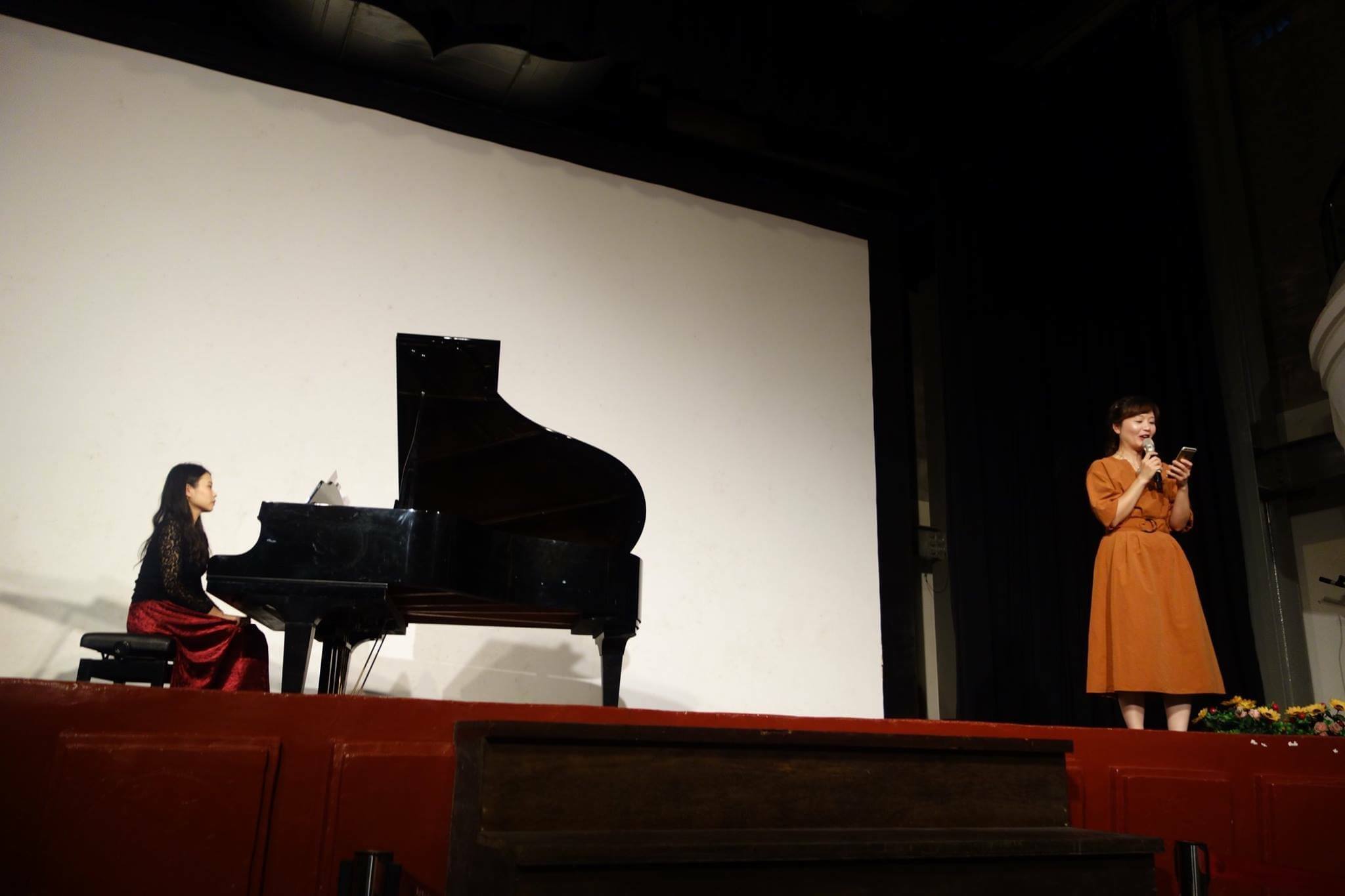 這個舞台是九份昇平戲院,復古的氣質。當天演出的合唱團,也都以旗袍、或具有年代感的服裝亮相。