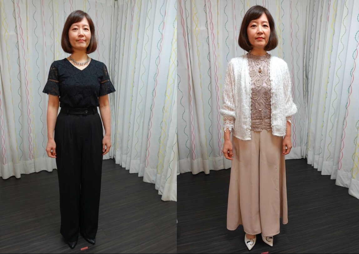以她的工作性質而言,淺色這套並不能凸顯身型、也不夠俐落,更別說在台上的氣勢了。