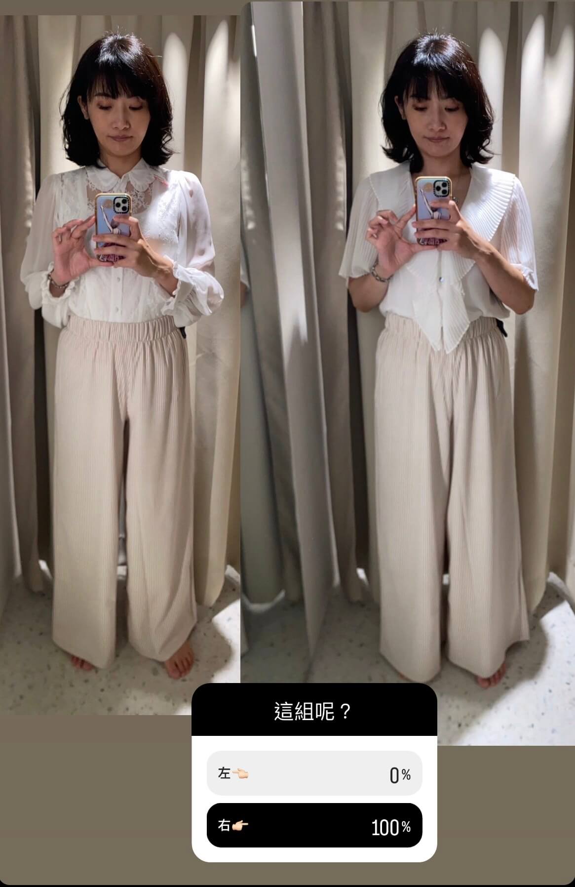那天在IG限動給大家投票我們在 穿搭實戰課 裡的試穿現況,幾乎每一套的票選結果,就是最後採購的選擇。