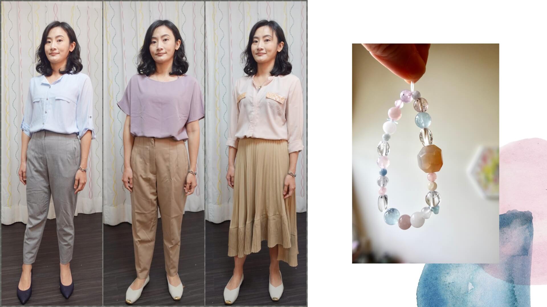 圖二是半年後她上穿搭實戰課的其中一個 穿搭加分公式 ,這回我讓他嘗試了比較鮮豔的顏色