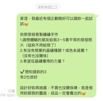 正當在心裡展開這個企劃主題的時候,家澄私訊說想礦買礦礦手作,