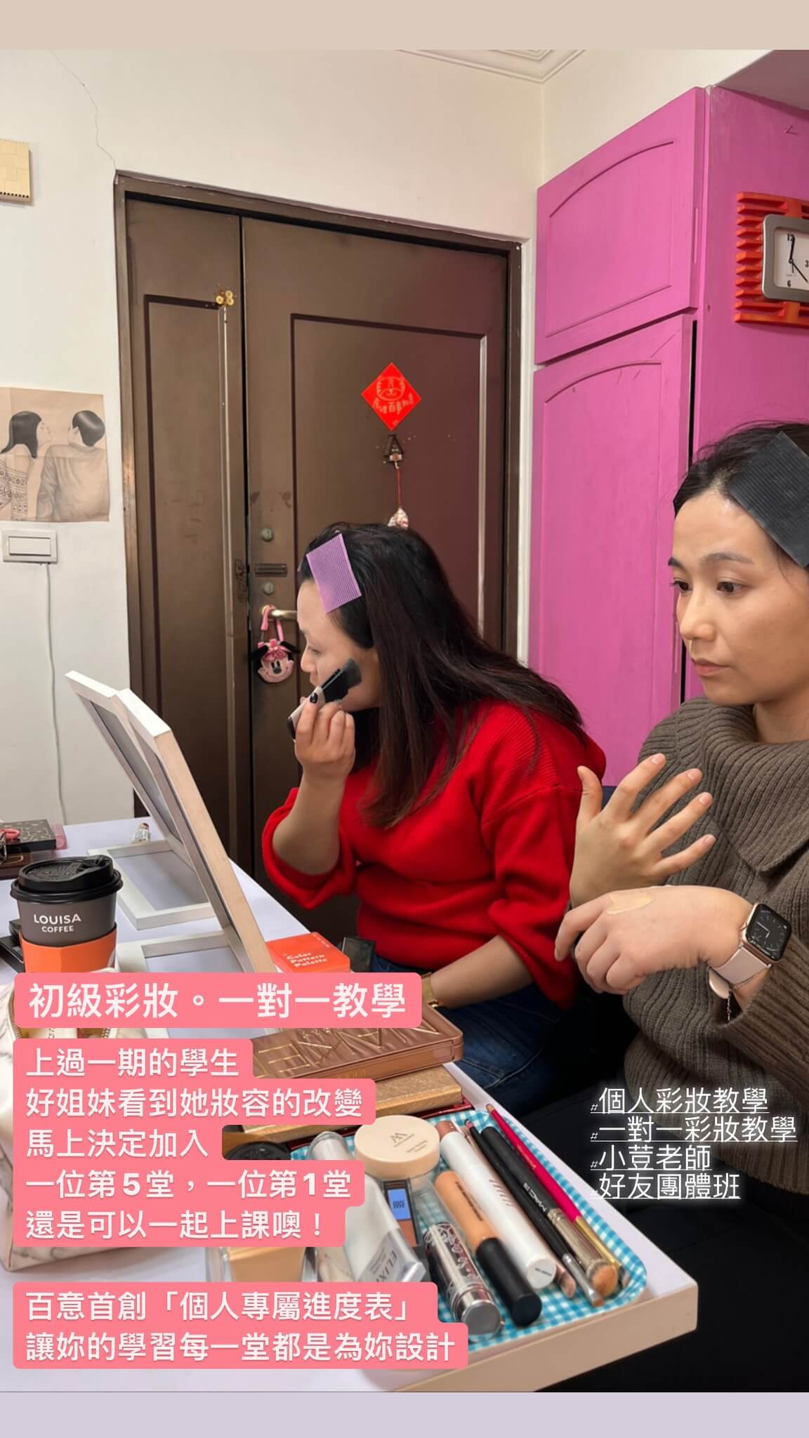 【你上次跟朋友一起學習,是什麼時候呢?】惠文來上ㄧ期四堂的初級彩妝,期間朋友看她的妝感變了很多、也想上課,於是兩人就一起又上了一期課程。