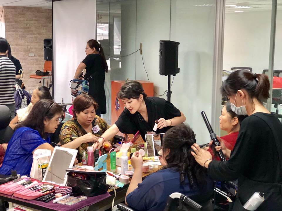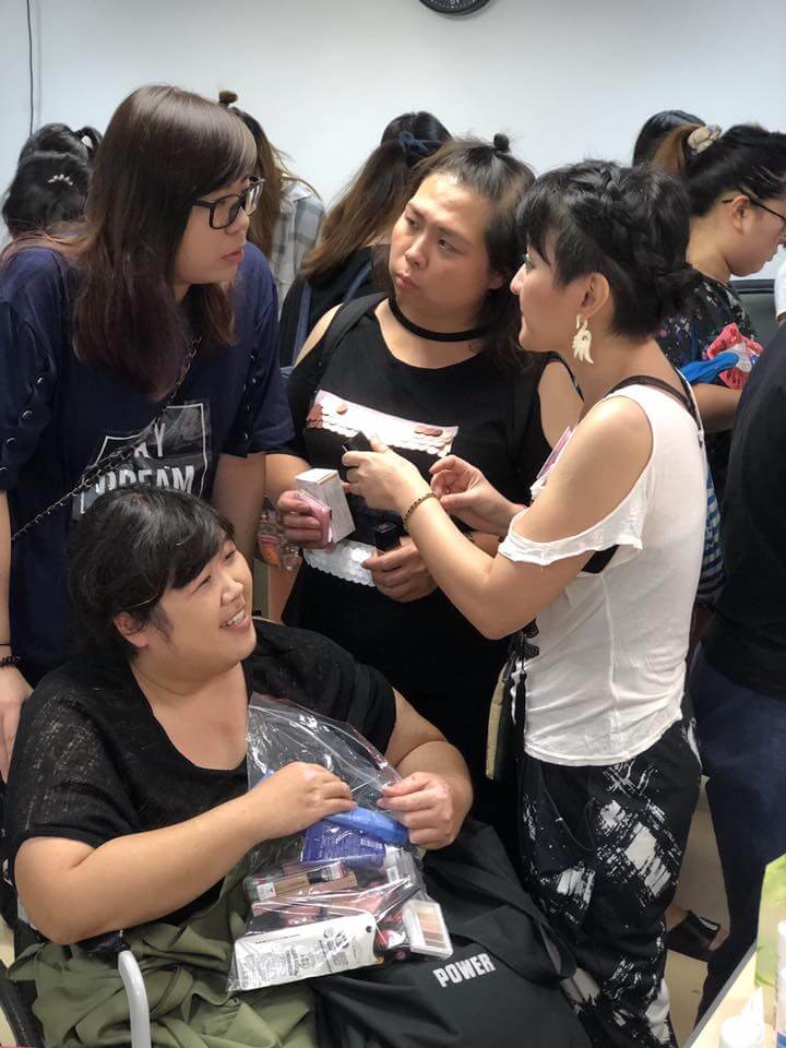 荳這桌的學員有4位身障的朋友,她們分享說,以前是沒自信化妝的,因為身障的關係,已經會被異樣的眼光看待,更別說化妝和打扮自己了。