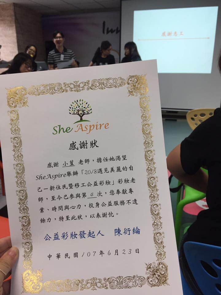 讓我能來當志工😄讓更多人能上彩妝課。