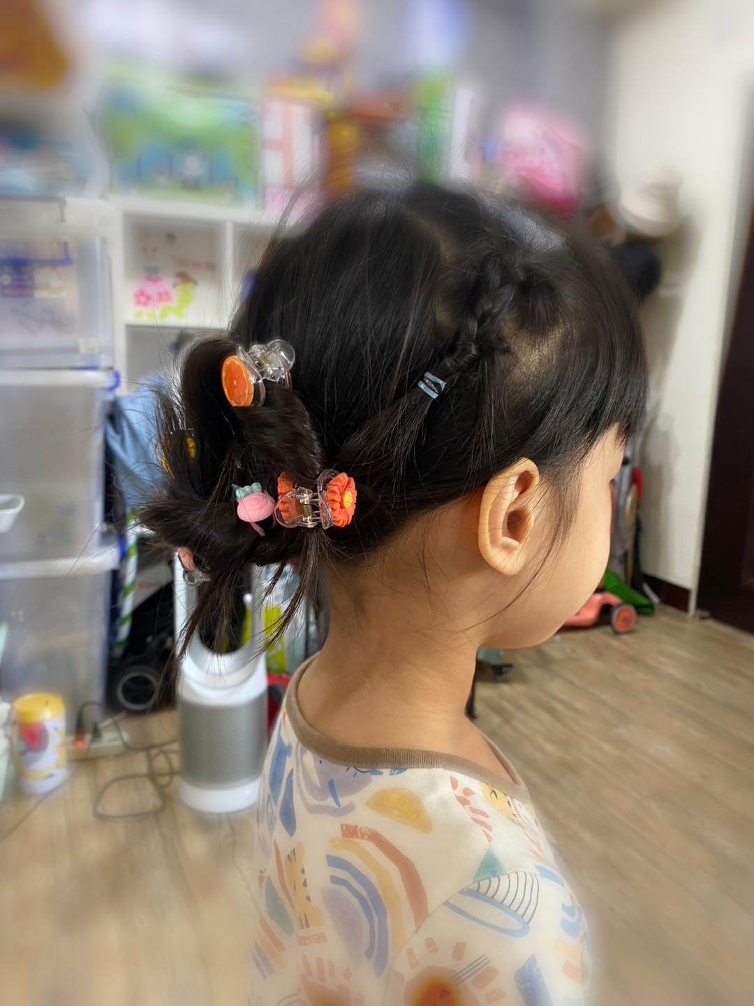 第二階段的辮子(原本是想教綁兩根辮子,到現場變教安娜😂),