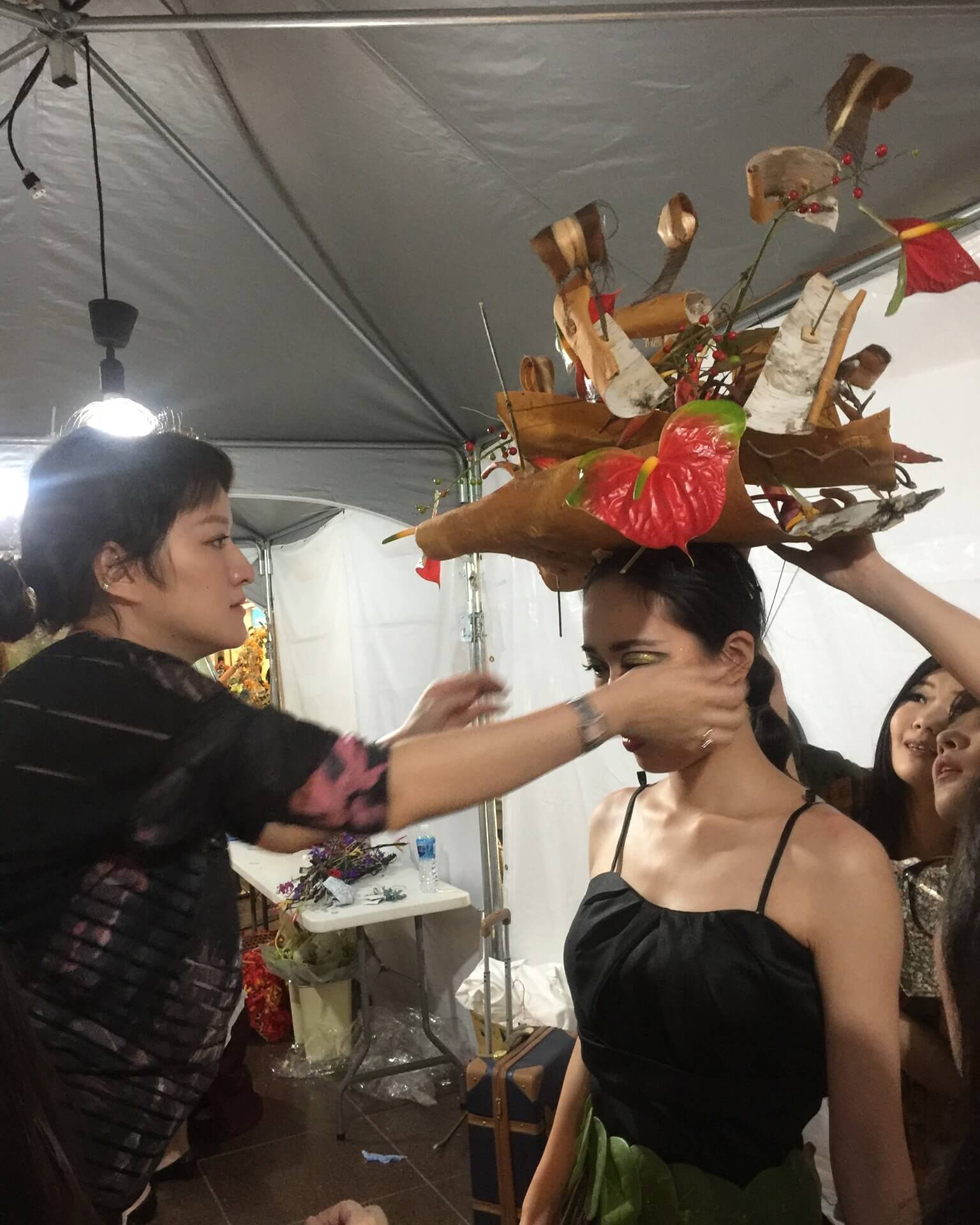 接著當協會受邀在台北市政府舉辦國際交流花藝秀的時候,百意當然成為造型團隊,