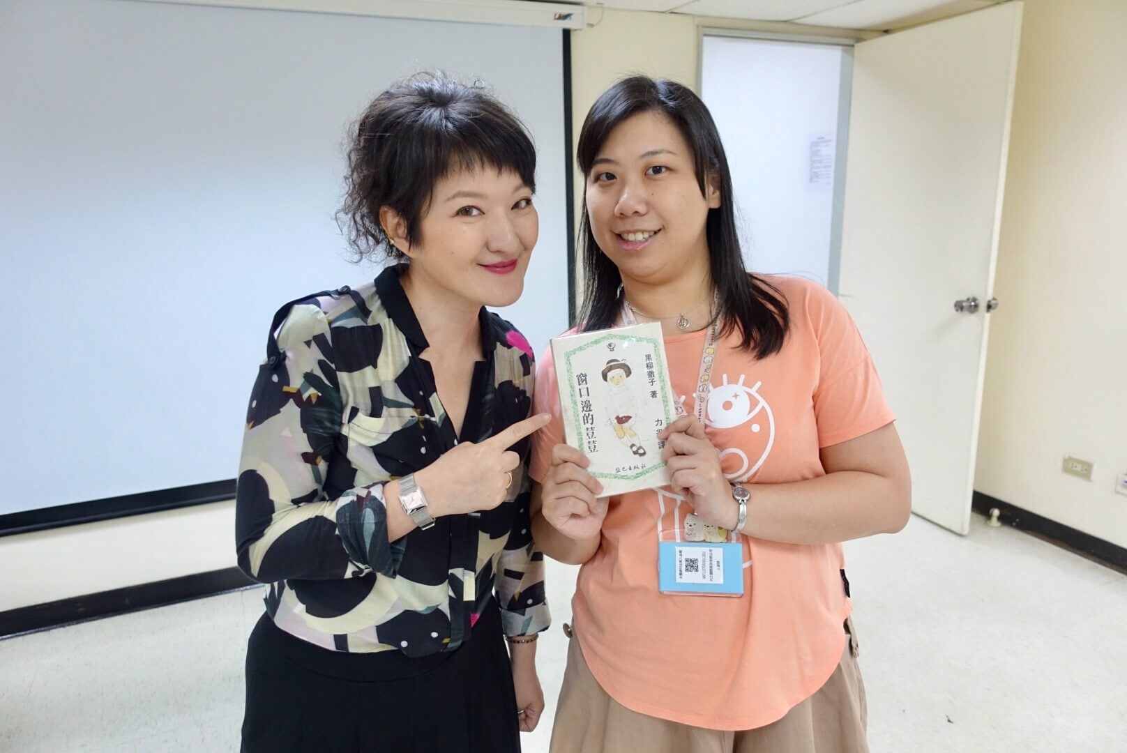 當時放了一張<窗邊的小荳荳>的封面,課前還在測試投影片的時候,人資就說:「小荳老師,妳剛剛放的那本書我有耶!」