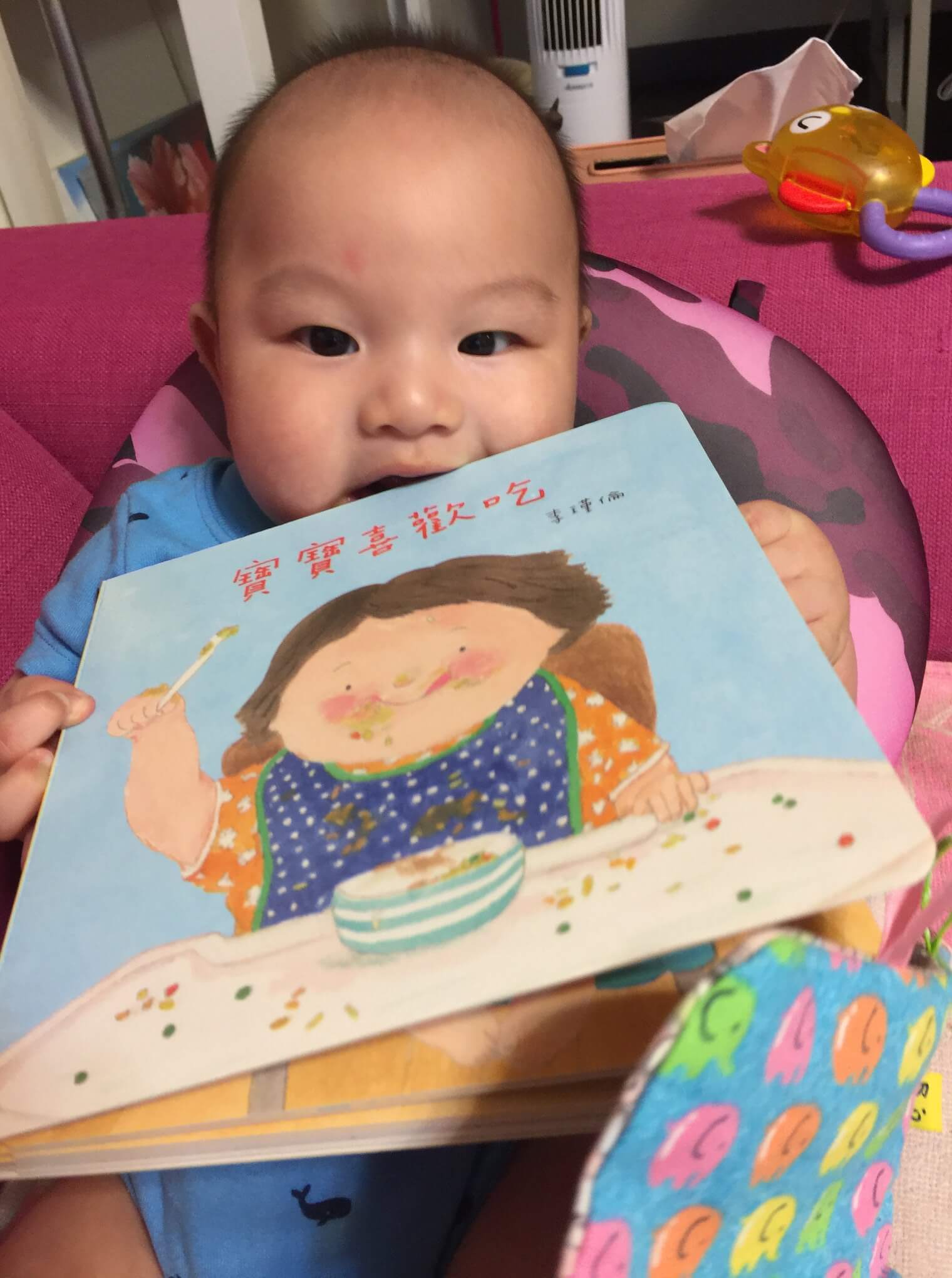 念的時候,書裡的有些食物他已經吃過了,念起來更有趣~