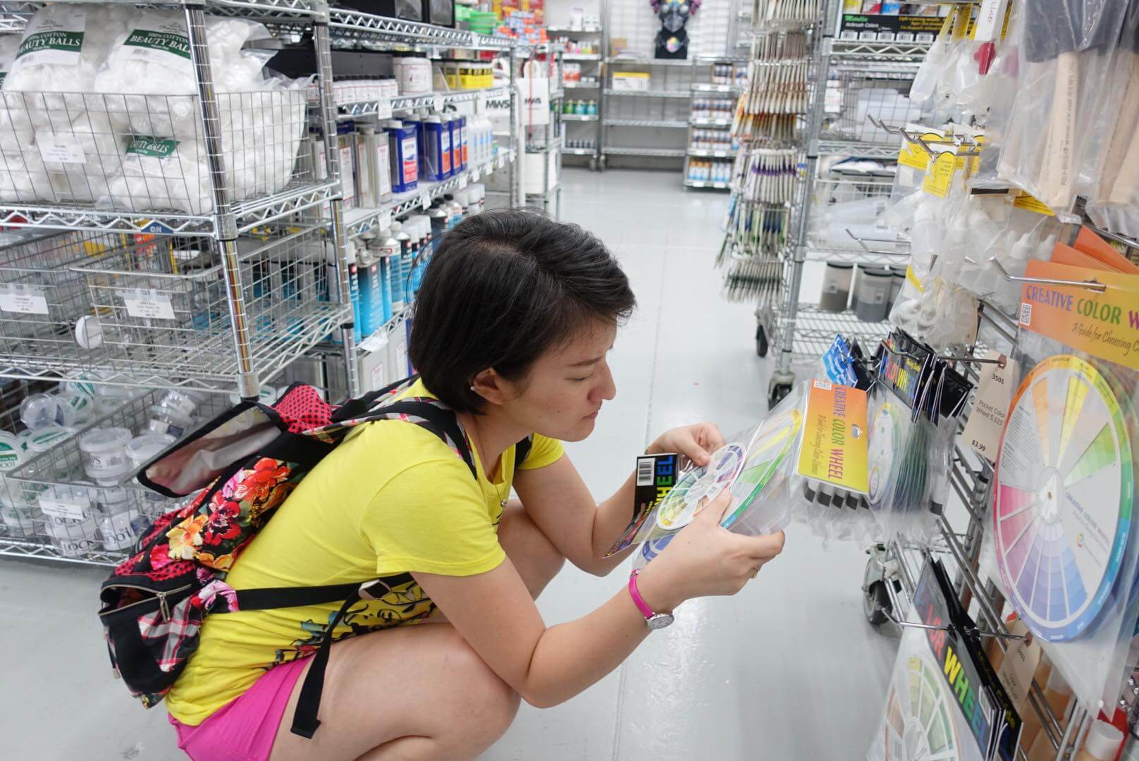 最愛的一家材料店MWS。各式各樣,各種工作所需。各種顏色材質,還好有椅子讓尢坐一下。