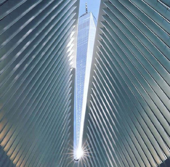 其實很多人不知道,世貿車站 #Oculus 的設計中,有一個狹長的天窗,是9月11號太陽運行的軸線。