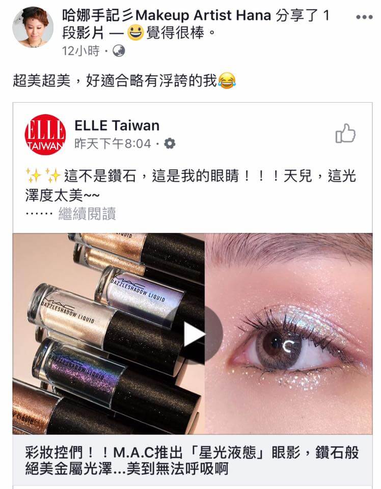 昨天被 哈娜手記彡Makeup Artist Hana 燒到,超想要 MAC 這款星光液態眼影😍但冷靜想想,其實用手邊的產品,就能創造出相同效果呦😉