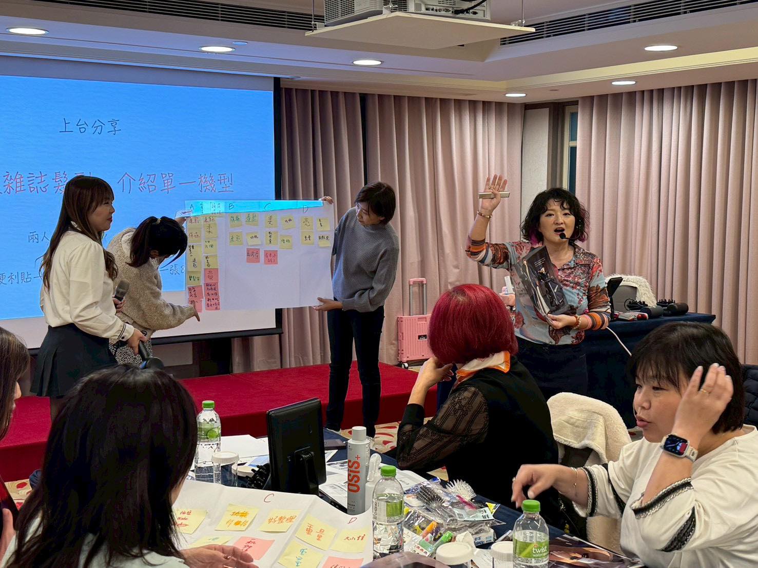 課程後段的「金字塔表達」,學員們融入產品、實作之後,練習精準的表達方式介紹產品。也能從他們的呈現當中,感受到對產品的熟悉度更上了一層。