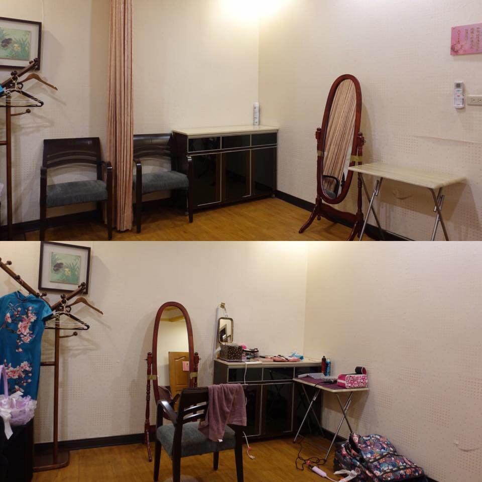 環顧四週,我們馬上把鏡子、桌椅、布簾移位,運用側邊的