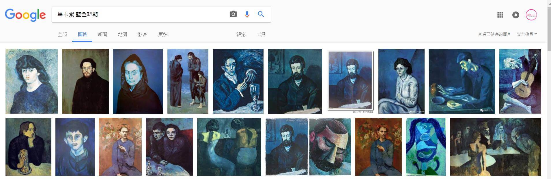 藍色時期的作品實在太憂鬱了,憂鬱到沒辦法挑選哪一張比較喜歡。估狗圖片出來的時候,