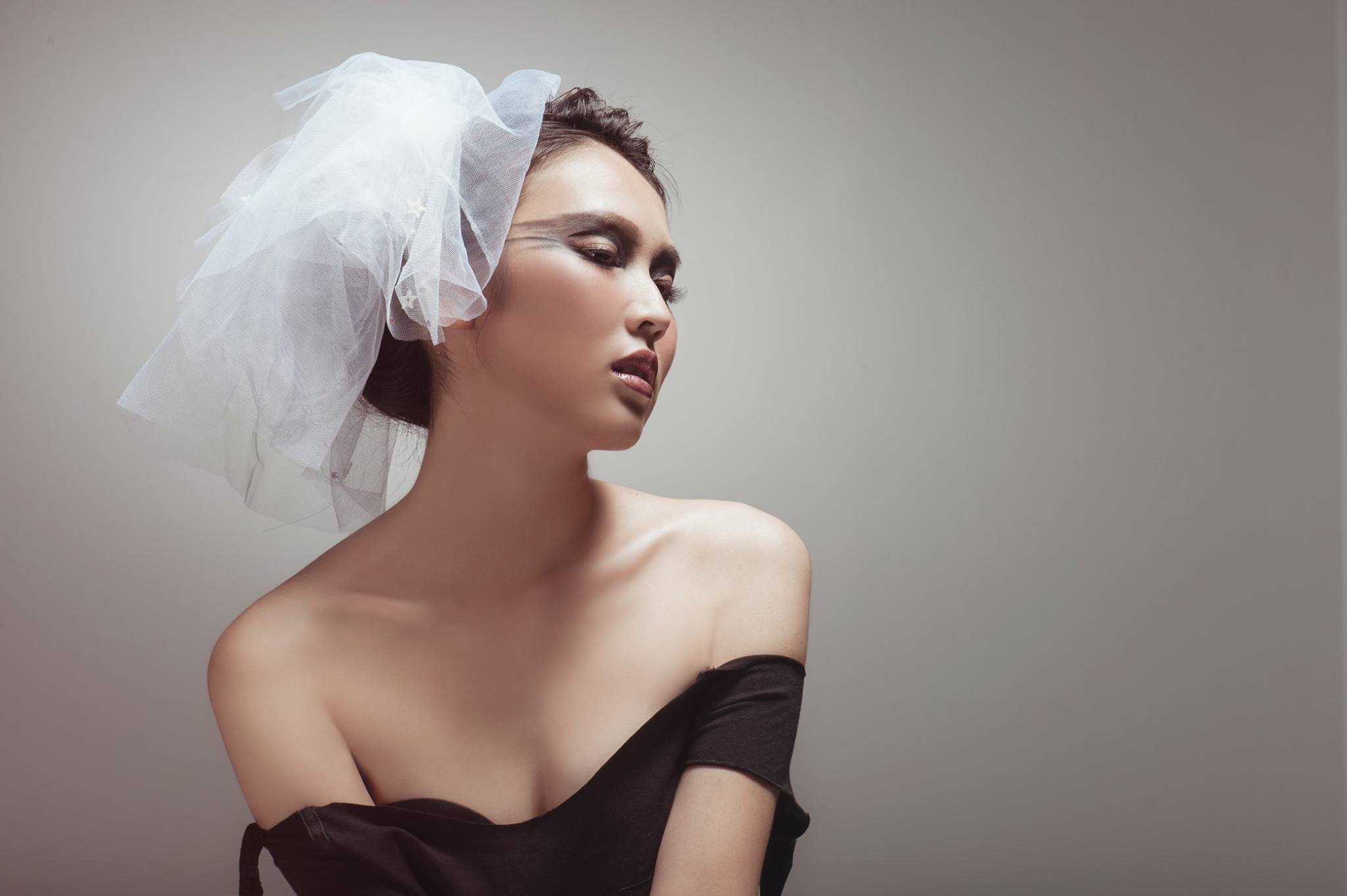 已經拍攝結束,攝影師酋酋進化妝間聊天,發現荳桌上的這個短紗,然後說:ㄟ~ 我們來拍一組這個好不好!