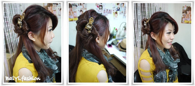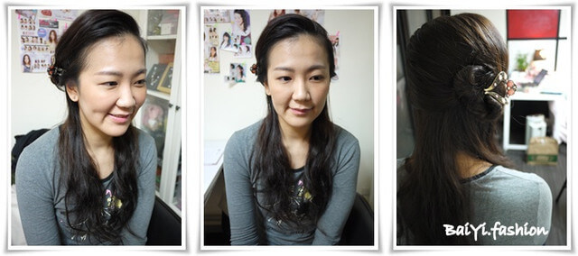 同樣技巧的髮型變化,只用了一個髮飾就完成。